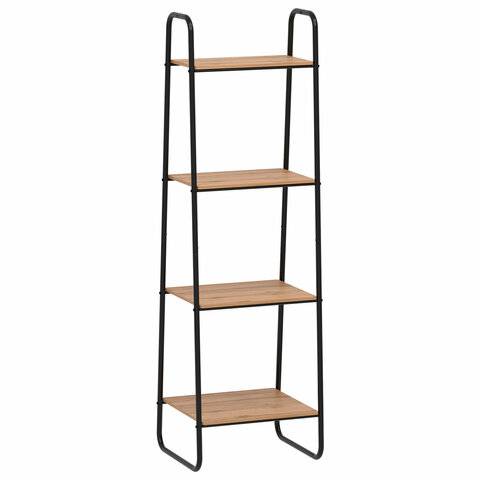 Стеллаж на металлокаркасе "Скандинавия-14", 450*385*1470 мм, 4 полки ЛДСП, черный/дуб, CТCП14 Ч