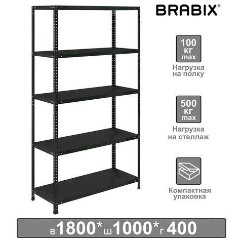 • Стеллаж металлический  "MS KD-195/60-5", 1950х1000х600 мм, 5 полок, сборная стойка, 291121, S240BR246502